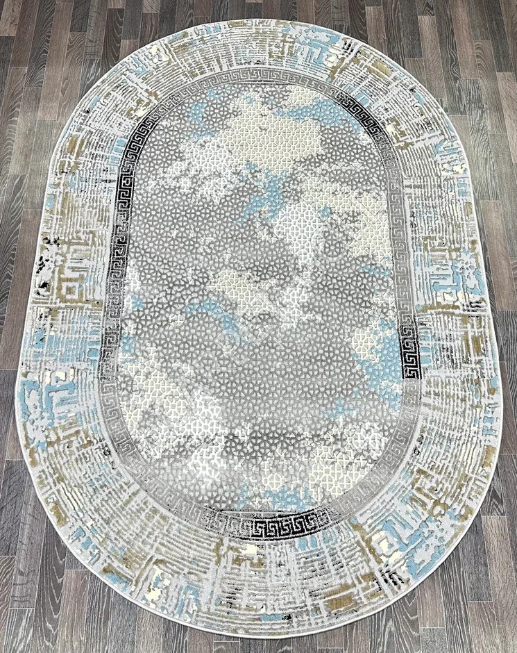 Ковер турецкий B029A SANANDAJ (Полиэстер хит-сет, бежевый, серый, голубой) овальный